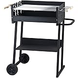 Tarrington House Barbacoa de Carbón Brigida, Acero/Madera, Rejillas Regulables en Altura, Asas de Madera, Estante Inferior, Ruedas, Negra