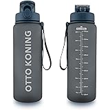 Otto Koning Botella Agua 1L Botella deportiva de Plástico Sin BPA. Hermética. Garrafa Agua con Cepillo de Limpieza, Boca Ancha, Correa Resistente Ideal para Deportes, Oficina, Bicicleta Reutilizable