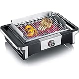 SEVERIN Barbacoa SENOA DigitalBOOST con parrilla de acero inoxidable, parrilla eléctrica con pantalla OLED digital, mini barbacoa sin riesgo de quemaduras, negro, PG 8114