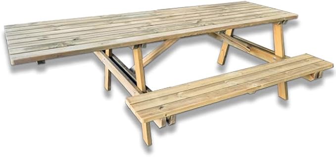Mesa de picnic de madera con bancos integrados para 6 plazas y 1 asiento adicional para minusválidos – 240 x 165 x 78 (alt.) cm, fabricada en Italia, de madera de pino impregnada en autoclase
