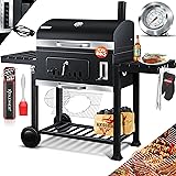KESSER® Parilla de Carbón con Carrito Grill con Tapa, Ruedas, Mango de Acero Inoxidable | Barbacoa y Termómetro Carbón Grande BBQ Asador Camping, Terraza, Jardín XXL Negro