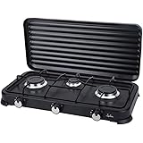Jata JECG2703 Cocina de Gas portátil de 3 fuego con parrilla, Apta para butano y propano, Tapa protectora extraíble, Ideal para camping, Ocupa poco espacio
