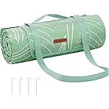 SONGMICS Manta de Picnic, 300 x 200 cm, con 4 Estacas de Suelo, Manta Grande, para Camping, Parque, Jardín, Playa, Impermeable, Lavable a Máquina, Plegable, Motivo de Hojas y Verde Menta GCM310C03