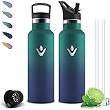 Mujigaga Botella Agua Acero Inoxidable, 500ml Botella Termica, A Prueba de Fugas, Botellas Agua Niños, sin BPA, Cantimplora con Pajita, Mantiene 24H Frio/12H Calor, para la Escuela, Oficina, Cámping