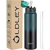 OLDLEY 1L Botella Agua Acero Inoxidable con Pajita, Aislado al Vacío Botellas Agua Metal Prueba de Fugas, Mantiene las Bebidas Calientes y Frías para Bicicleta, Camping, Deportes, Mujeres, Hombres