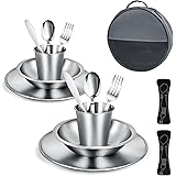 (a partir de 19/02/2026 14:59 GMT +01:00 - Más informaciónLos precios y la disponibilidad de los productos son exactos a partir de la fecha/hora indicada y están sujetos a cambios. Cualquier información de precio y disponibilidad que se muestre en [los sitios de Amazon relevantes), según corresponda] en el momento de la compra se aplicará a la compra de este producto.)Cubiertos Camping – Vajilla de acero inoxidable. Incluye plato, cuenco, vaso, tenedor, cuchillo y cuchara. Juego de Cubiertos para llevar de picnic, acampada o autocaravana. (Para 2 Personas)