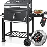 KESSER® Parilla de Carbón con Carrito Grill con Tapa, Ruedas, Mango de Acero Inoxidable | Barbacoa y Termómetro Carbón Grande BBQ Asador Camping, Terraza, Jardín XL Gris