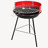 Acomoda Textil – Barbacoa de Carbon con Parrilla Redonda y Estructura de Acero, Ligera y Portatil. Asador 33x56 cm Ideal para Jardin, Camping o Terraza de Facil de Limpieza.