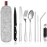 HOTUT Juego de Cubiertos para Llevar y Camping - 9pcs Acero Inoxidable Con Bolsa - Para Acampar