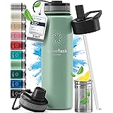 Botella de Agua Térmica ACTIVE FLASK + Pajita (3 Tapones) sin BPA - 1l & 500ml | Frasco Termo de Acero Inoxidable + Aislamiento Vacío | Cantimplora Aislada Bicicleta Deporte Caliente Fría Café Té