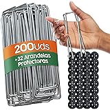 PORTENTUM Grapas Césped Artificial 200 Uds + 32 Arandelas – Piquetas Camping Suelo Duro – Estacas para Tomateras – Grapas Malla Antihierbas – 150 mm Alto – Ancho Ajustable – 3 mm Grosor