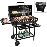 TEENO Parrilla para Barbacoa, Barbacoa de Carbóncon con Funda Impermeable y Antipolvo, Guantes y Pinzas Resistentes al Calor, Termómetro, Cajón para Cenizas y Rejillas de Ventilación Ajustables.