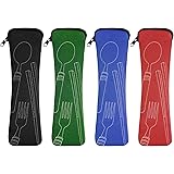 Vicloon 4 Piezas Bolsa de Cubiertos Portátil con Cremallera para Guardar Cubiertos en Camping, Trabajo, Escuela y Picnic (Negro/Azul/Rojo/Verde)