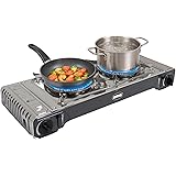 Amig - Hornillo Camping Gas | Cocina Portatil | 2X Quemadores | Incluye Plancha - Parrilla De Fundicion | Acero Inoxidable | 2,2 Kw Potencia x 2