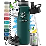 Botella de Agua Térmica ACTIVE FLASK + Pajita (3 Tapones) sin BPA - 1l & 500ml | Frasco Termo de Acero Inoxidable + Aislamiento Vacío | Cantimplora Aislada Bicicleta Deporte Caliente Fría Café Té
