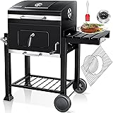 Barbacoa de Carbón Alabama Grande con Ruedas, Termómetro y Altura Ajustable | Parrilla Grill de Carbón con Carrito y Tapa