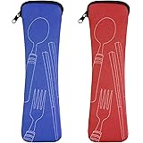 Vicloon 2 Piezas Bolsa de Cubiertos Portátil con Cremallera para Guardar en Camping, Picnic, Trabajo, Escuela y Viajes (Rojo/Azul)