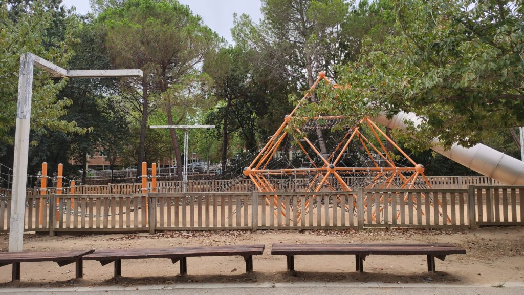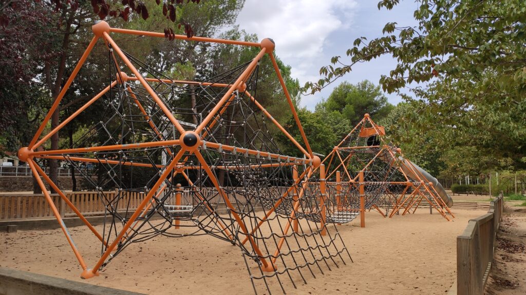 - Parque infantil con toboganes, estructura de cuerdas, puentes colgantes, redes, columpios y juegos para los más pequeños.